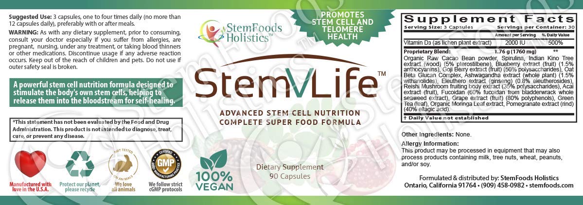 Amazon Com Stemvlife Is Our Most Powerful Stem Cell Formula And Daily Supplement With Superfoods Moringa Cacao Green Blue Algae Pomegranate And Many Other Nutrients 100 Natural And Vegan Health Household